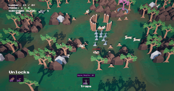 You control a cursed forest. You win by slaying all the viking settlers, and lose if they finish building their settlements.